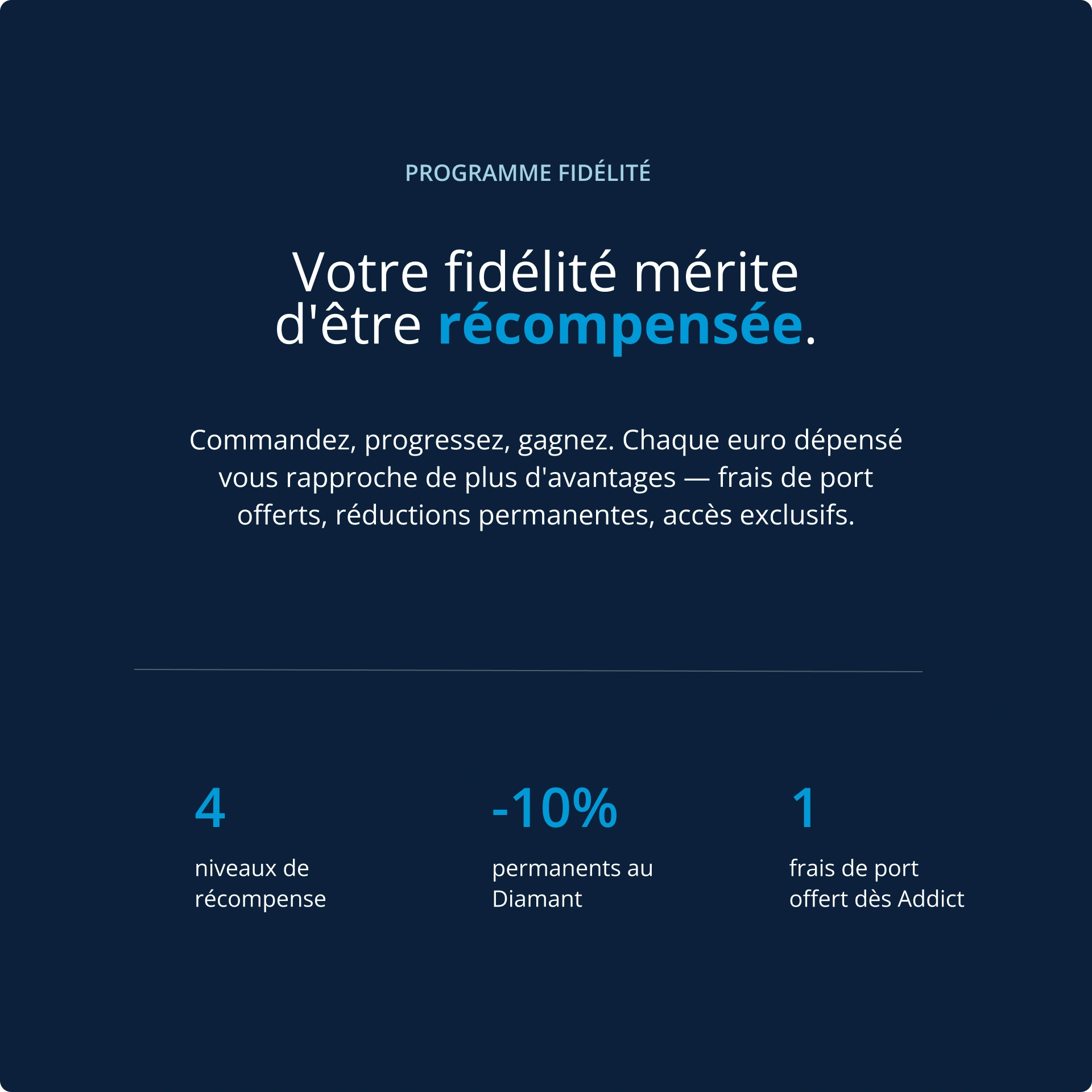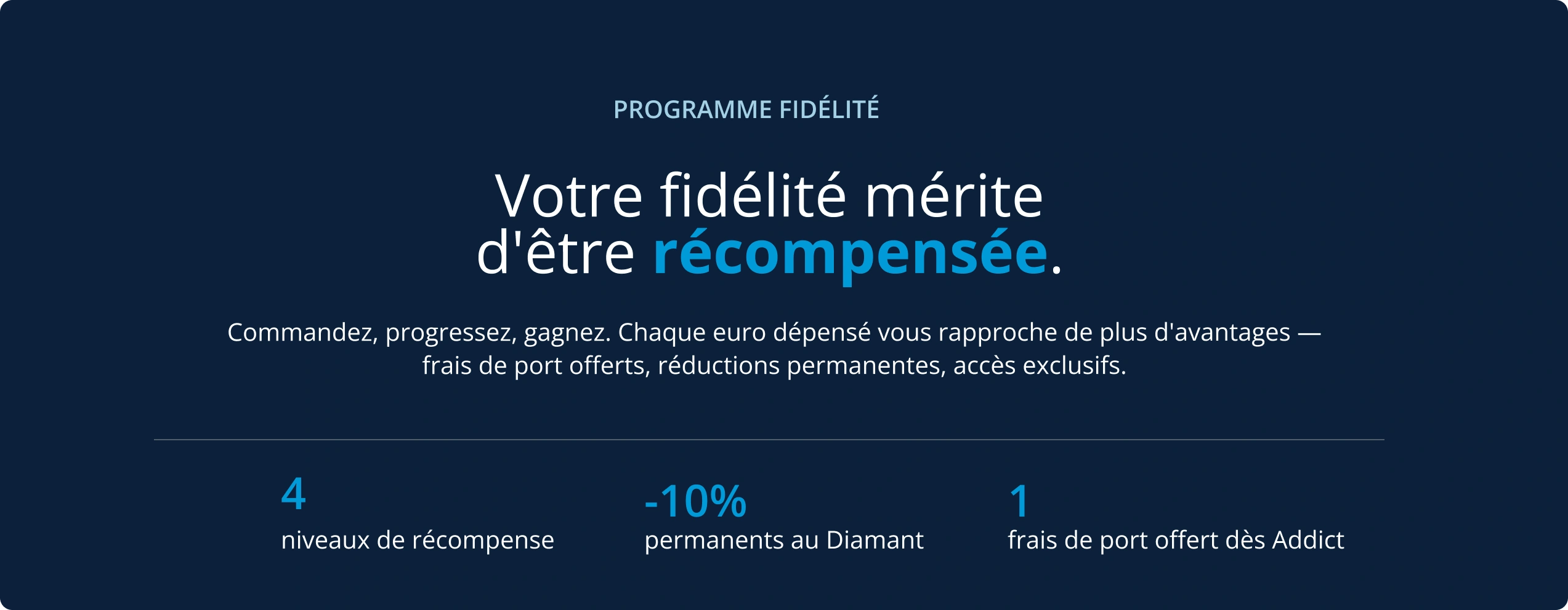Oui, le programme est structuré en plusieurs statuts (Rookie, Addict, Élite, Diamant), qui débloquent des avantages supplémentaires selon votre volume d’achat annuel.